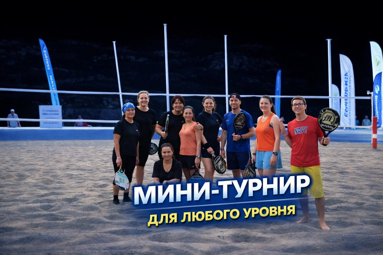 Если вы ни разу не играли в пляжный теннис (большой, настольный теннис, падел, сквош или бадминтон), лучше записаться на тренировку с тренером или игровую тренировку. Если опыт игры в ракеточный спорт есть, можете смело записываться на турнир.